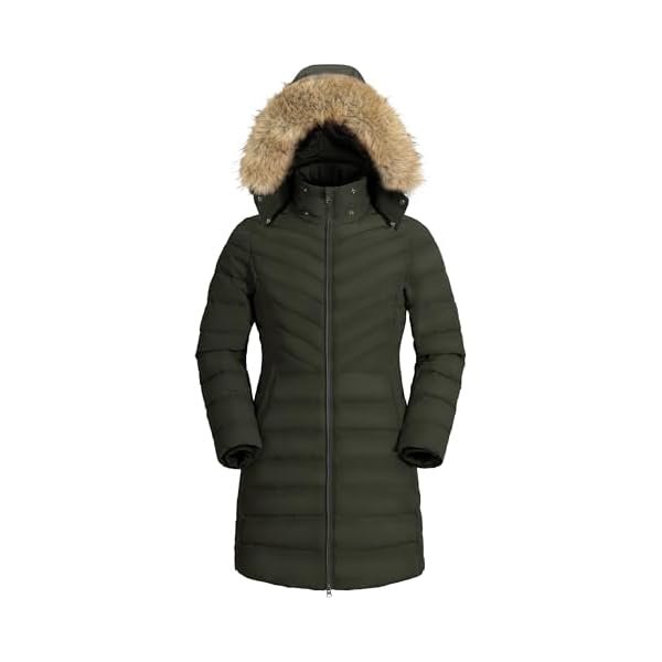 - Waterproof & Windproof: The durable shell of our women’s winter coats offers excellent waterproof performance. The stand collar, removable hood with removable faux fur(made of recycled material) and soft stretch cuffs work together to provide great windproofing.